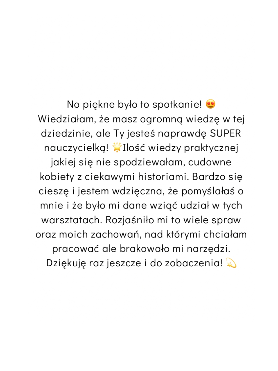 Przed naszym spotkaniem otrzymasz formularz do wypełnienia. Pomoże on nam ustalić temat z jakim chciałabyś pracować podczas naszego spotkania.
