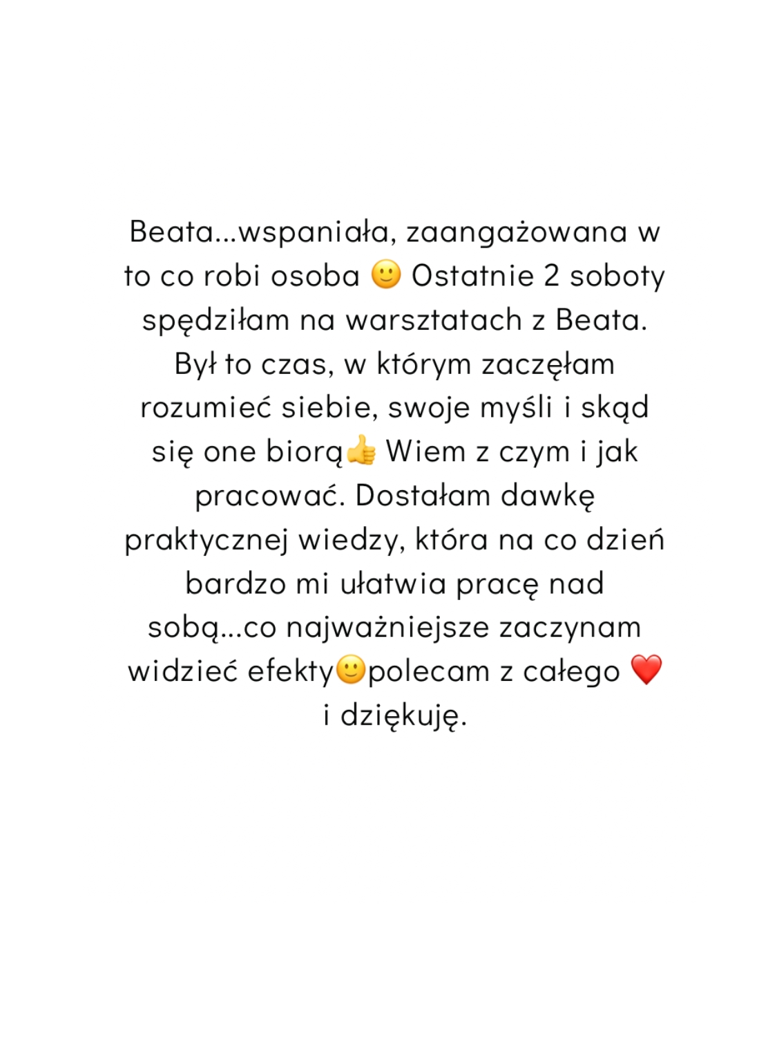 Zastępuję przestarzały model zarządzania oparty na kontroli i trudnych emocjach, na budowanie wewnętrznego autorytetu i zaufania, bo gdy działasz z pozycji władzy, tracisz już na starcie, Kiedy działasz z pozycji Wewnętrznego Autorytetu, świat zaczyna z Tobą współpracować,